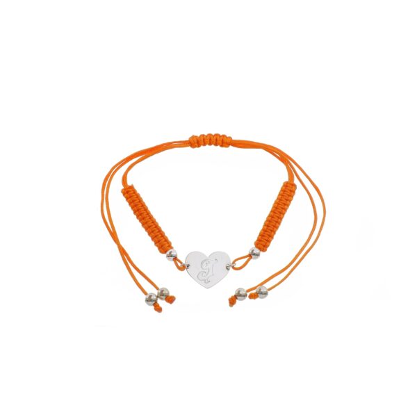 Pulsera de Plata hilo naranja corazón con inicial J