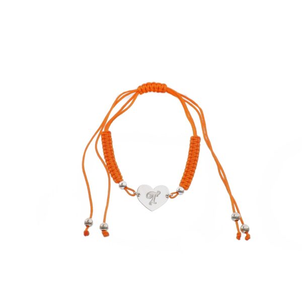 Pulsera de Plata hilo naranja corazón con inicial T