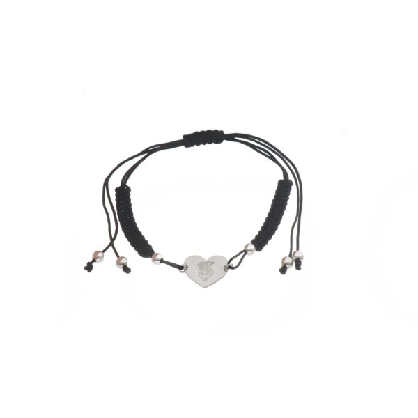 Pulsera de Plata hilo negro corazón con inicial P