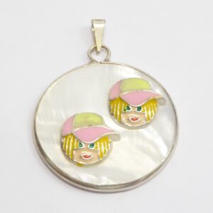 Colgante de Plata Nácar dos niñas con gorras de colores