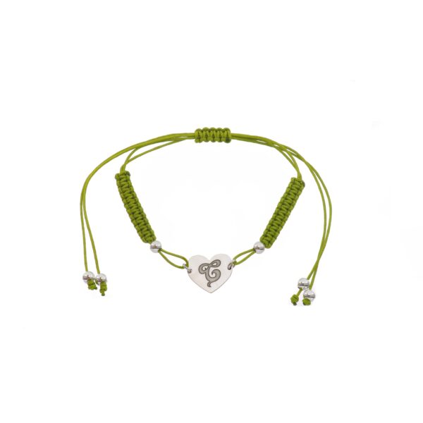 Pulsera de Plata hilo verde corazón con inicial C