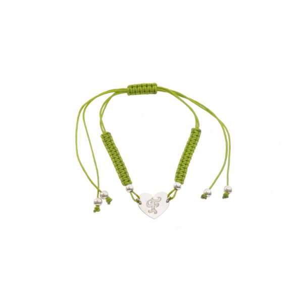Pulsera de Plata hilo verde corazón con inicial F