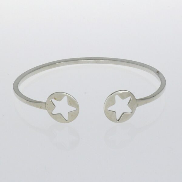 Pulsera de Plata rigida abierta con dos estrellas caladas en circulo