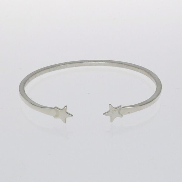 Pulsera de Plata rigida abierta con dos estrellas pequeñas