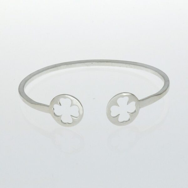 Pulsera de Plata rigida abierta con dos trebol en circulos