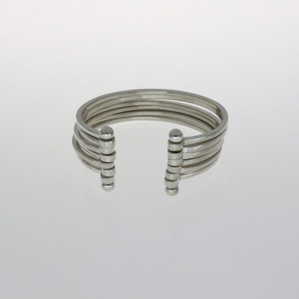 Pulsera de Plata rigida abierta con seis aros cuadrados