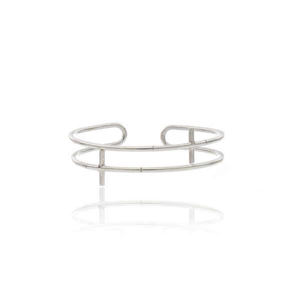 Pulsera de Plata rigida abierta doble hilo redondo con cruz T. grande