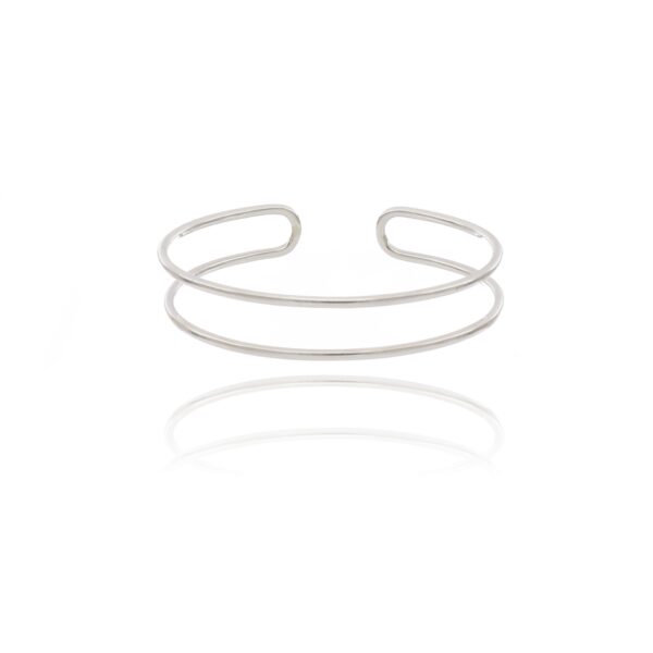 Pulsera de Plata rígida abierta doble hilo redondo T.Grande
