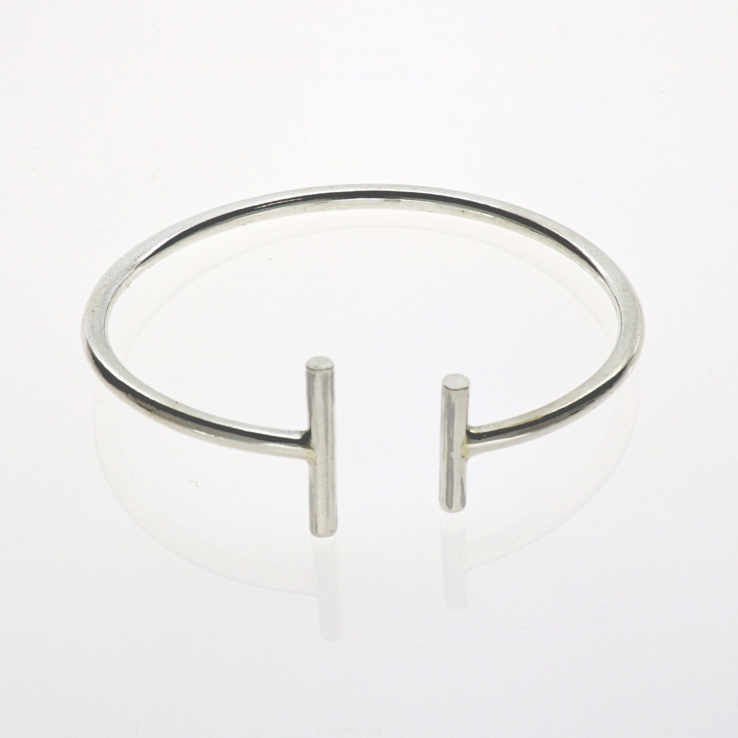 Pulsera de Plata rígida abierta hilo redondo terminada en T Grande