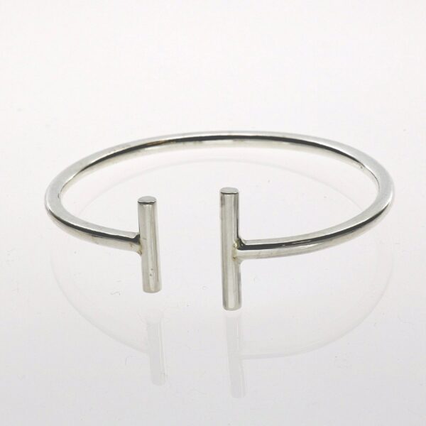 Pulsera de Plata rigida abierta hilo redondo terminado en T Pequeña