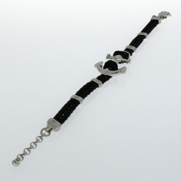 Pulsera de Plata rodiada doble hilo negro con ancla