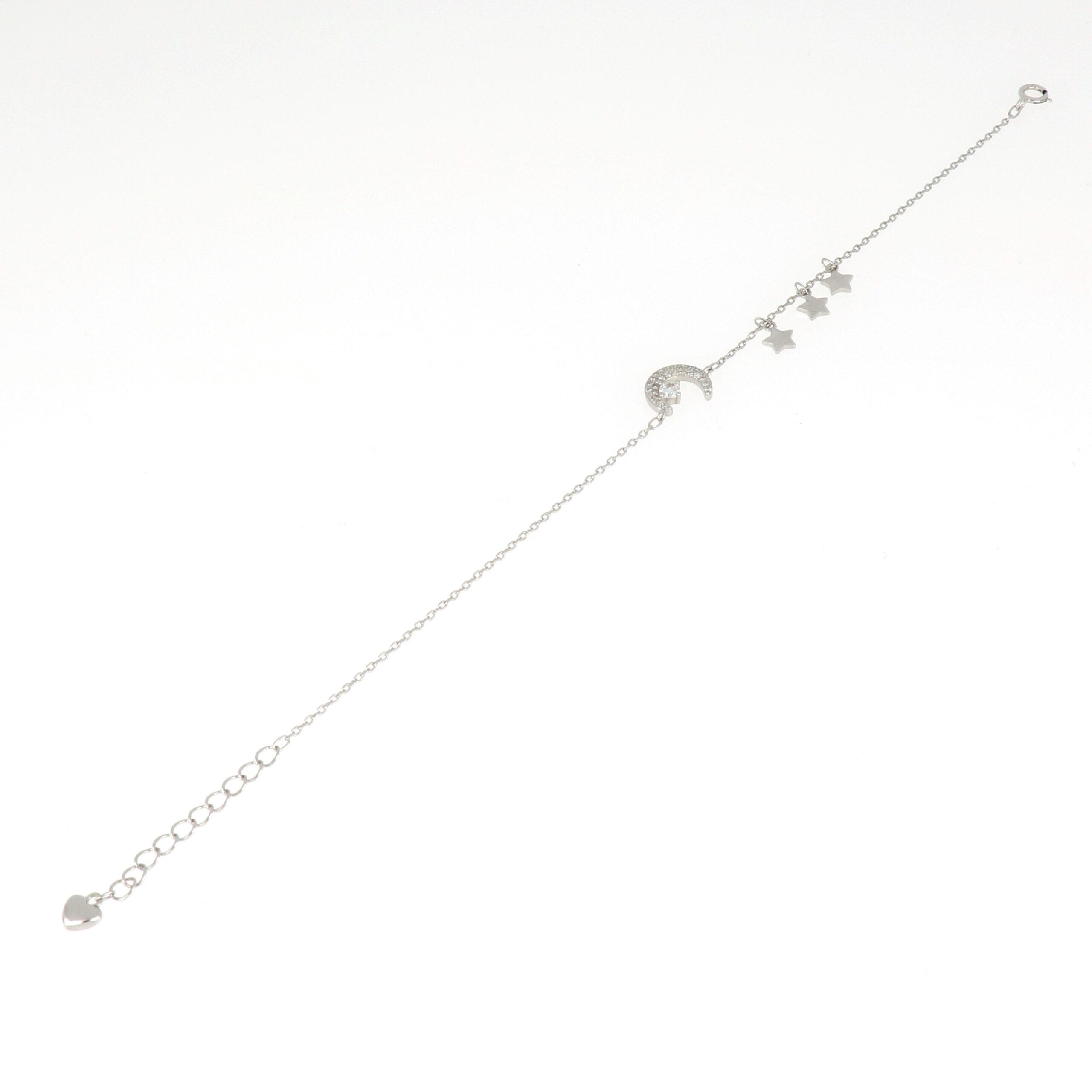 Pulsera de Plata rodiada luna con piedras y tres estrellitas