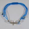 UncategorizedPulsera de hilo doble turquesa con nudos adaptable, bolas lisas de 6 y 4 mm. Cruz en el centro. De 2 cm de largo y 1 cm de ancho. Plata de ley de 925 milésimas.