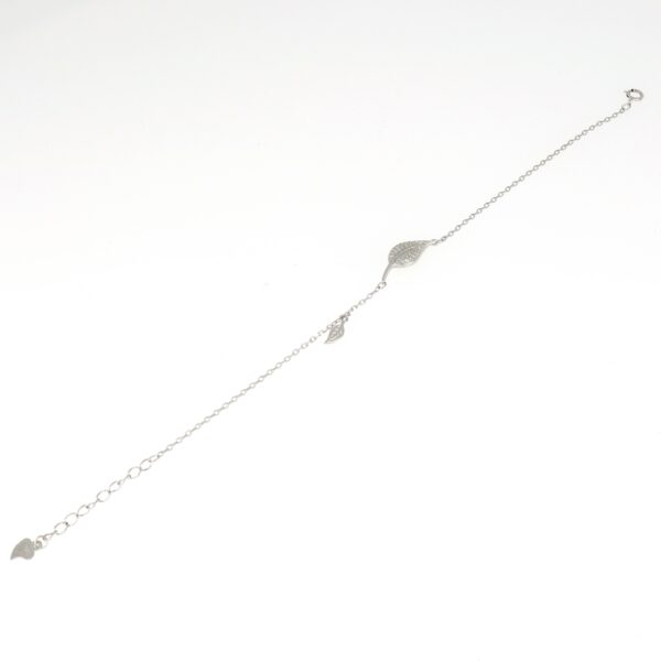 UncategorizedPulsera de cadena forzada de 1.30 mm . Con una hoja con circonitas en el centro, de 19 50 mm de larga y 7.33 de ancha y otra colgando de 9.30 de larga.