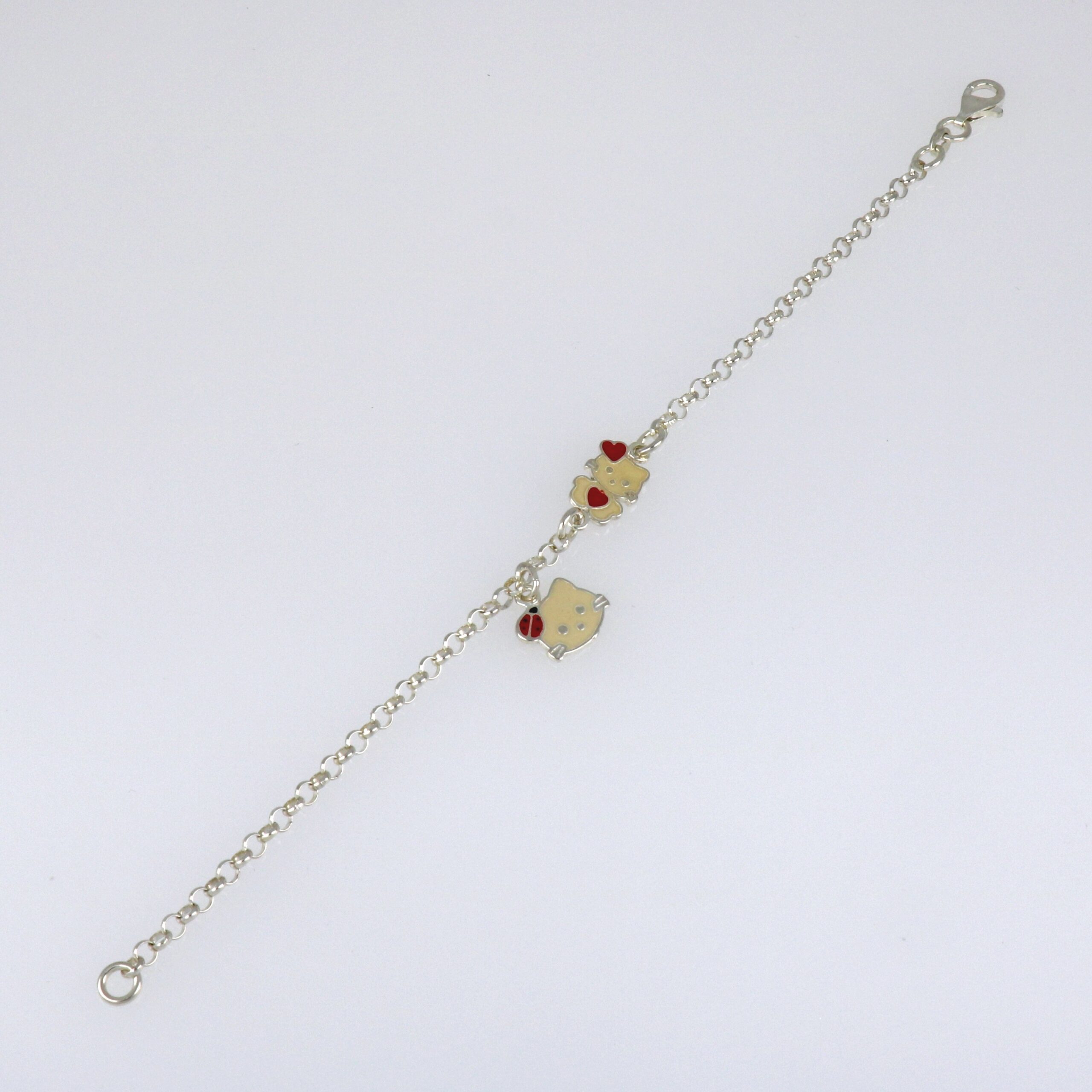 Pulsera con cadena rolo de 3.20 mm , con gatitas esmaltada de 12 mm.