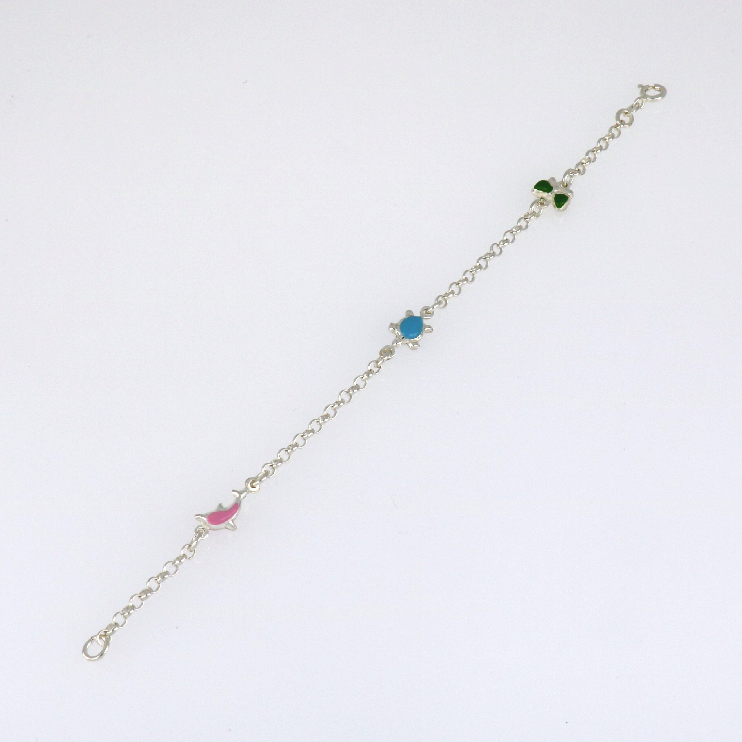 UncategorizedPulsera de cadena rolo de 2.80 mm con un lazo, una tortuga y un delfín esmaltado en diferentes colores.