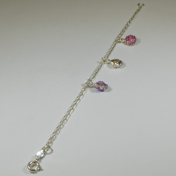 Pulsera de cadena bilbao con colgantes de sol esmaltados. 18 cm de largo. Plata de ley de 925 milésimas..