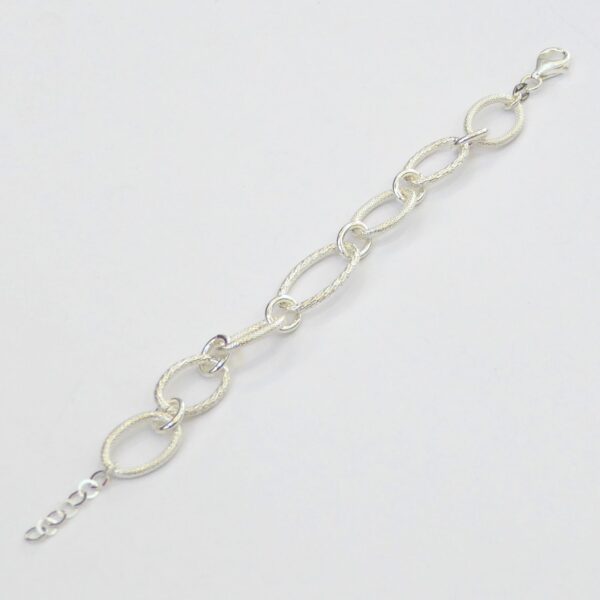 Pulsera con asas huecas tallada de 16 cm de largo y 2.5 cm de alargador. Plata de ley de 925 milésimas.