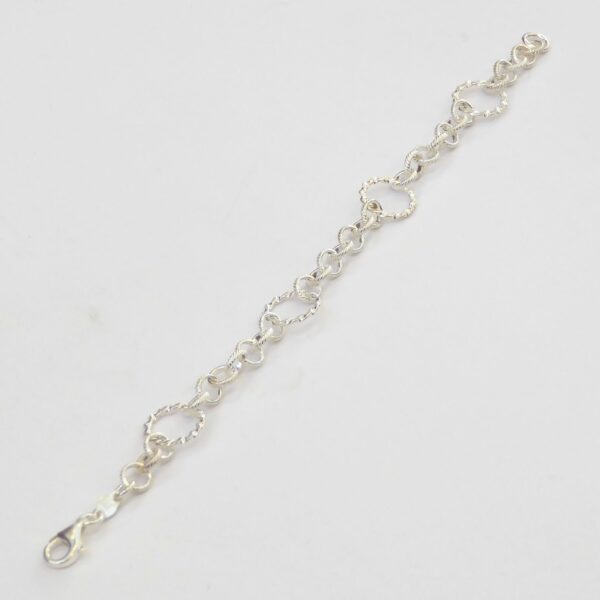 Pulseras, Sin piedrasPulsera de cadena rolo labrada con aro labrado.