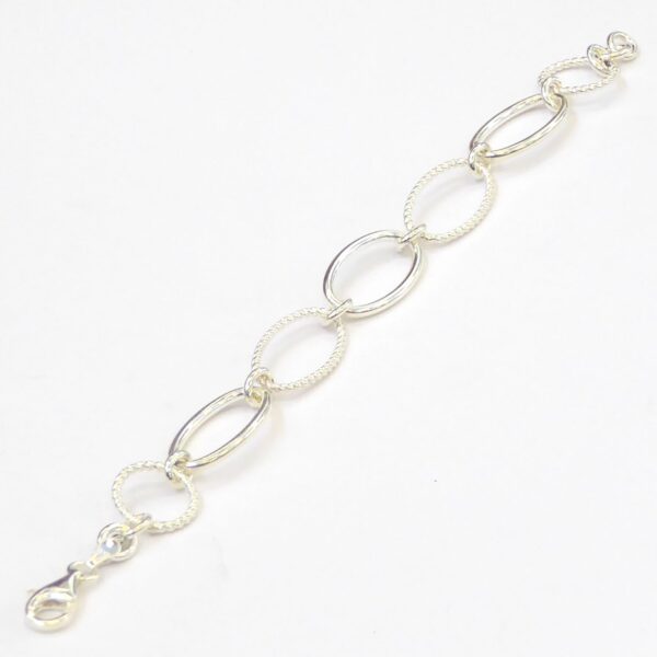 Pulsera asas huecas. Combinado en lisa y labrada. 19 cm de largo. Plata de ley de 925 milésimas.