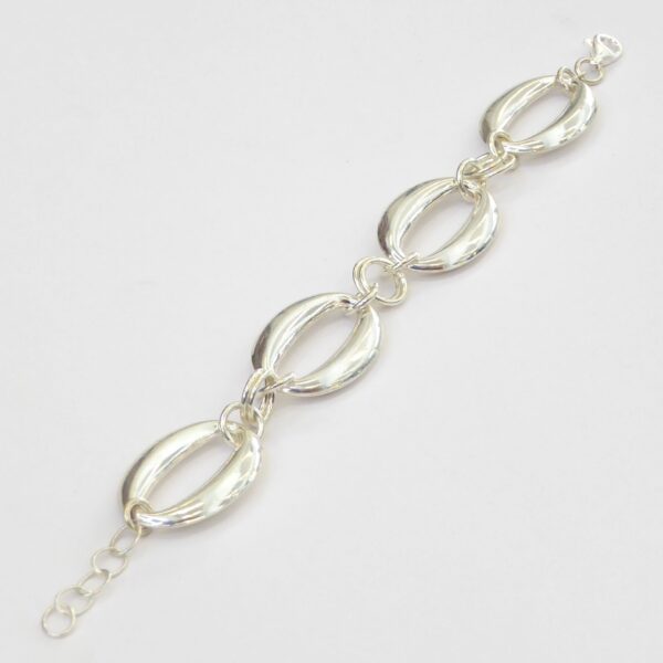Pulsera hueca con asas ovaladas de 19 cm de largo con 3 cm de alargador. Plata de ley de 925 milésimas.