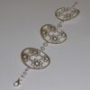 Pulsera con tres circunferencias tallada con motivos de flores,con tumbo y 3.5 cm de diámetro. 19 cm de largo. Plata de ley de 925 milésimas.