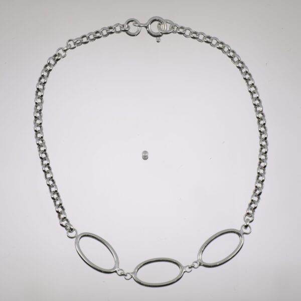 UncategorizedPulsera de cadena rolo 2.5 mm de grosor. Con eslabones ovalados lisos ,de 10 mm de largo y 7 mm de ancho en el centro. Pulsera de 19 cm de largo. Plata de ley de 925 milésimas.