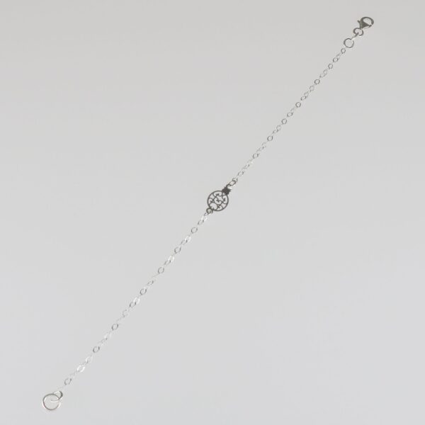 UncategorizedPulsera con cadena forzada de 1.80 mm y adorno ovalado calado en el centro, de 11.85 mm. Pulsera de 18 cm. Plata de ley de 925 milésimas