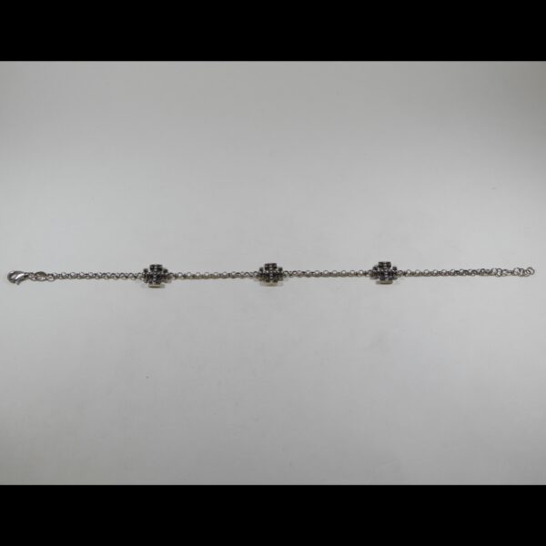 Pulsera de cadena rolo de 2.50 mm y tres cruces pontezadas de 1 cm. pulsera de 19 cm de largo y 2 cm de alargador. Plata de ley de 925 milésimas.