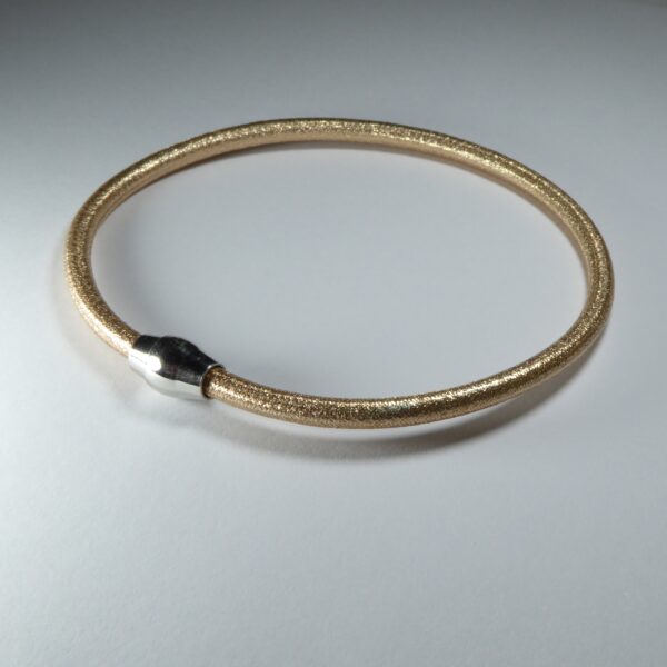 Pulsera lisa color cobre satinada. De 3 mm de diámetro y 20 cm de largo. Con cierre de imán. Plata de ley de 925 milésimas..