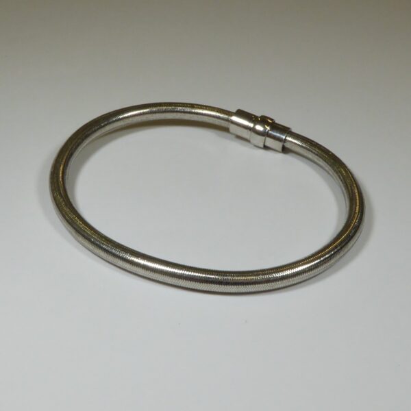 Pulsera lisa rodiada. De 4. mm de diámetro y 19.5 cm de largo. Con cierre de imán. Plata de ley de 925 milésimas..