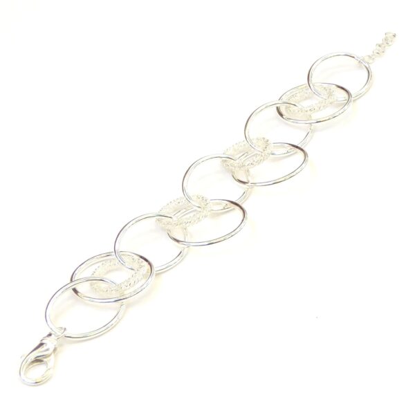 Pulsera lisa, combinando eslabones ovalados, redondos y de malla. 20 cm de largo. Plata de ley de 925 milésimas.