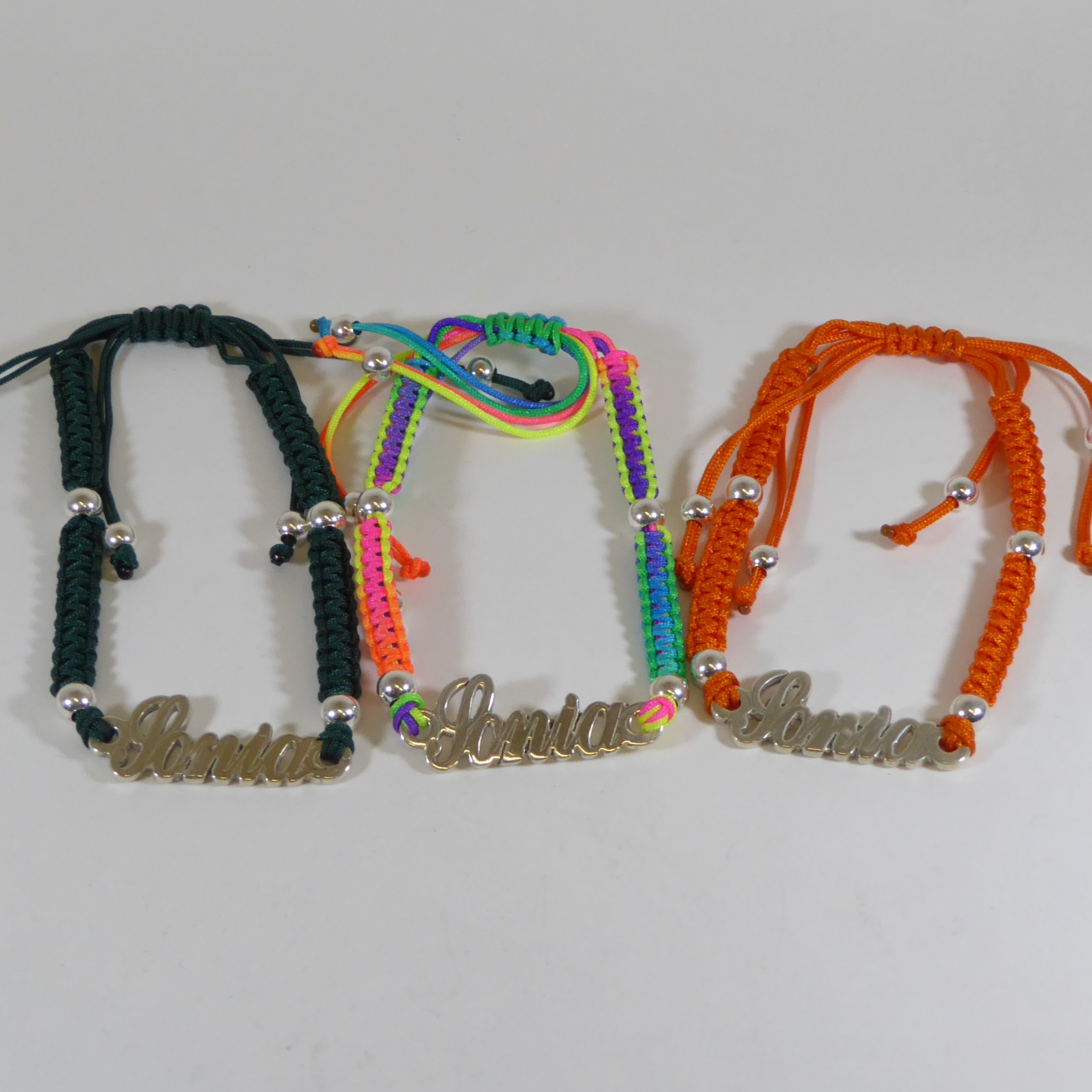 UncategorizedPulsera adaptable de macrame, diferentes colores con el nombre de Sonia . De 3.5 cm de largo y 7 mm de ancho. Pulsera de plata de ley con 925 milésimas.