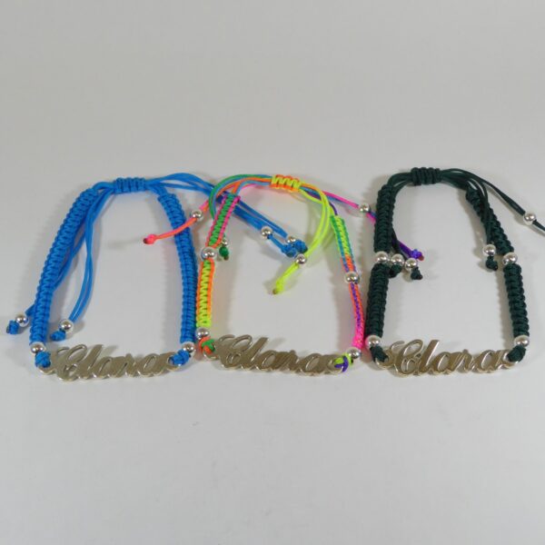 UncategorizedPulsera adaptable de macrame, diferentes colores con el nombre de Clara. De 4 cm de largo y 7 mm de ancho. Pulsera de plata de ley con 925 milésimas.