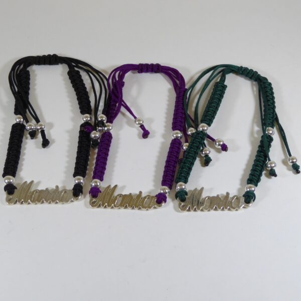 Pulsera adaptable de macrame, diferentes colores con el nombre de María. De 3 cm de largo y 7 mm de ancho. Pulsera de plata de ley con 925 milésimas.