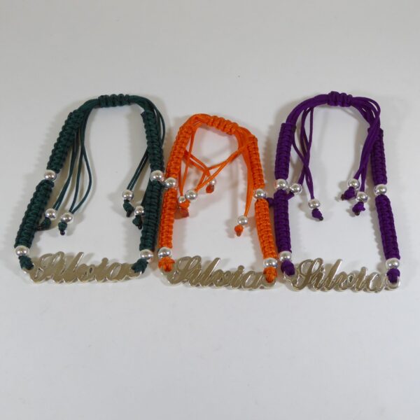 Pulsera adaptable de macrame, diferentes colores con el nombre de Silvia. De 4 cm de largo y 7 mm de ancho. Pulsera de plata de ley con 925 milésimas.