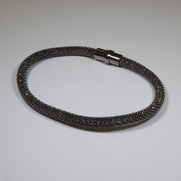Pulsera de malla de tubo. De 5 mm de diámetro y 19 cm de largo. Con cierre de imán. Plata de ley de 925 milésimas.