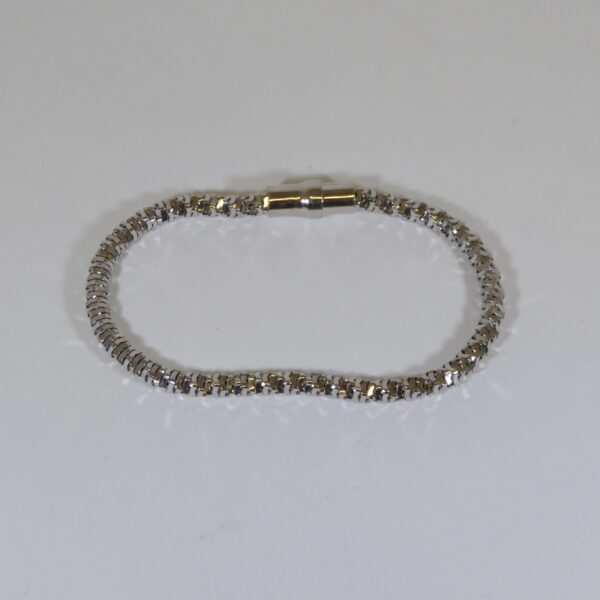 Pulsera de malla de tubo diamantada. De 4.30 mm de diámetro y 19.5 cm de largo. Con cierre de imán. Plata de ley de 925 milésimas.