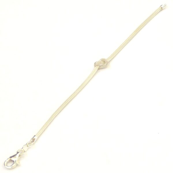 Pulsera de malla de 2 mm con nudo al centro. 19 cm de largo . Plata de ley de 925 milésimas.