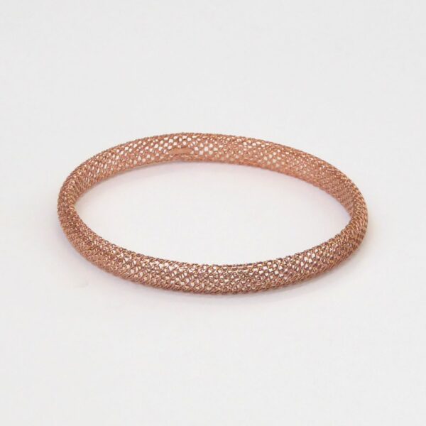 Pulsera de malla chapada rigida, color cobre. De 7.50 mm y 7 cm de diámetro . Plata de ley de 925 milésimas.