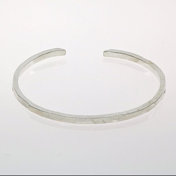 Pulsera hilo cuadrado martilleado de 3.45 mm y 7 cm de diámetro. Con terminación en diagonal.