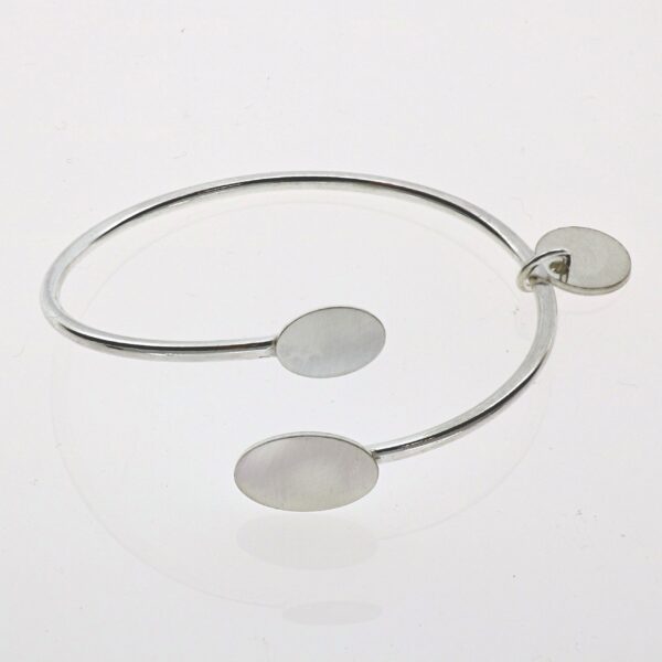 Pulsera rígida cruzada con hilo de 2.40 mm, diámetro de 5.5 cm.