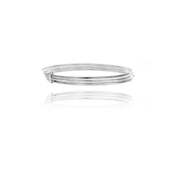 Juego de tres pulseras rígidas unidas de 2 mm y 6 cm de diámetro.