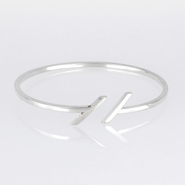 Pulsera rígida hilo cuadrado de 2.60 mm y 6.5 cm de diámetro,con barra oblicua en los extremos.Plata de ley de 925 milésimas.
