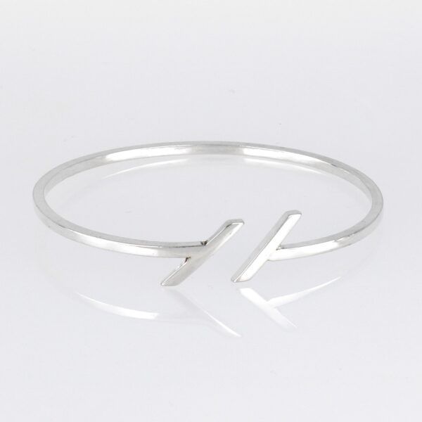 Pulsera rígida hilo cuadrado de 2.40 mm y 7 cm de diámetro,con barra oblicua en el extremo.Plata de ley de 925 milésimas.