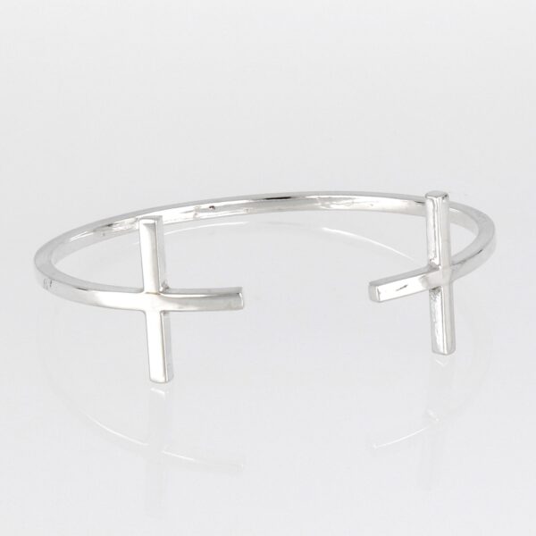Pulsera rígida hilo cuadrado de 2.60 mm y 6 cm de diámetro,con cruces en los extremos.Plata de ley de 925 milésimas.