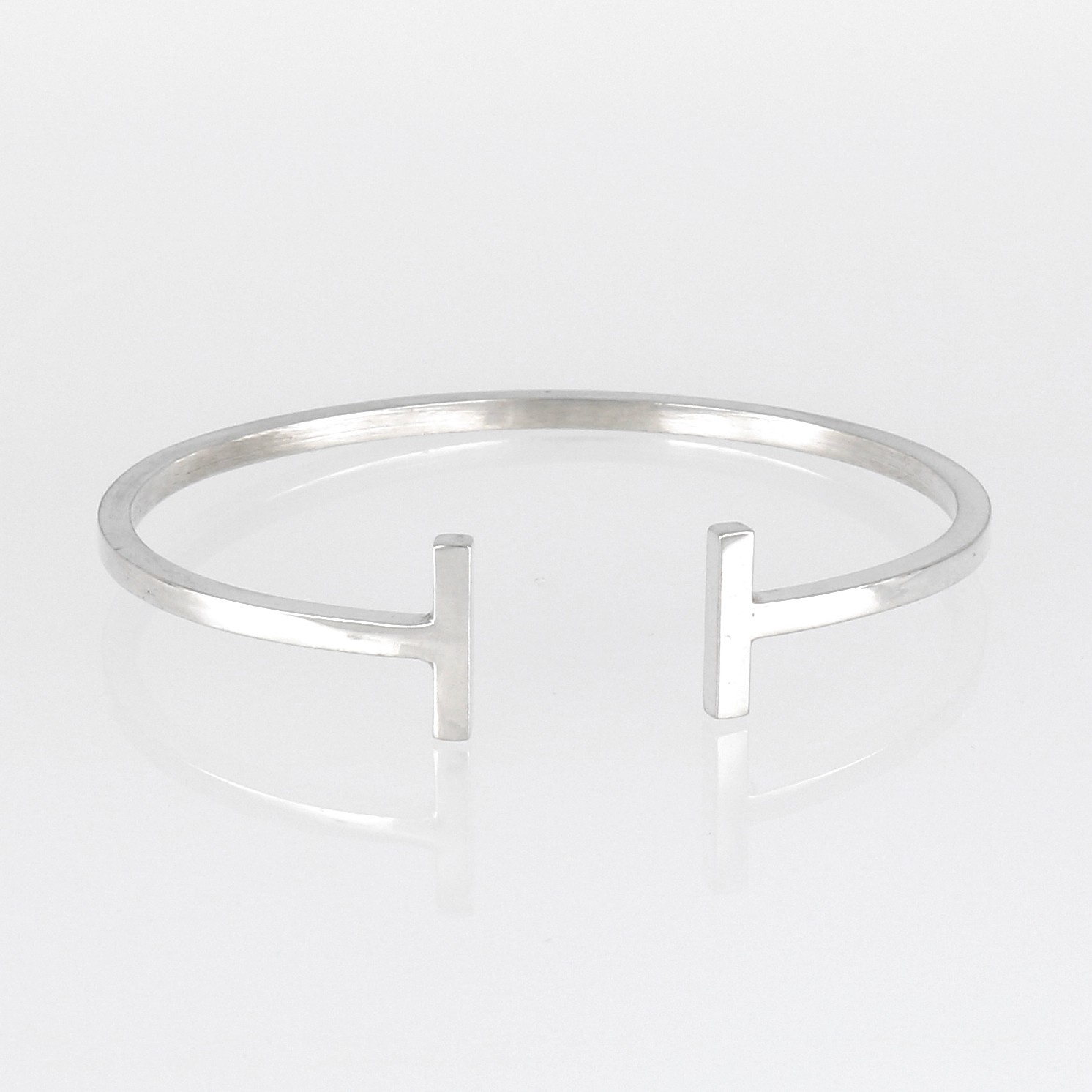 Pulsera rígida hilo cuadrado de 2.40 mm y 5,5 cm de diámetro,con barras en los extremos.Plata de ley de 925 milésimas.