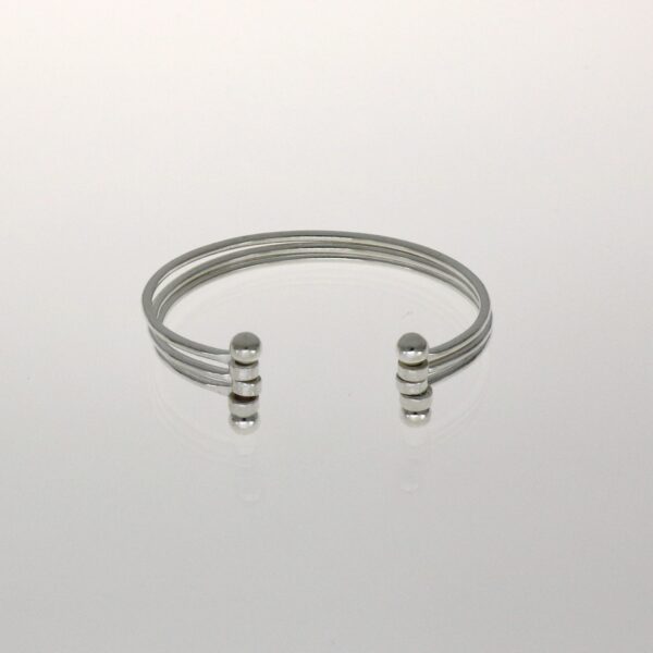 Tres pulseras rígidas de 2 mm y 5.5 cm de diámetro.