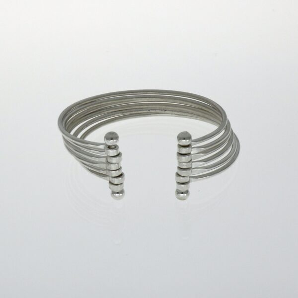 Seis pulseras rígidas de 2 mm y 5.5 cm de diámetro.