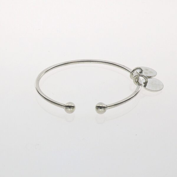 Pulsera rígida hilo redondo de 2.30 mm , diámetro 5.5 cm y bolas lisas de 6 mm en las terminaciones.